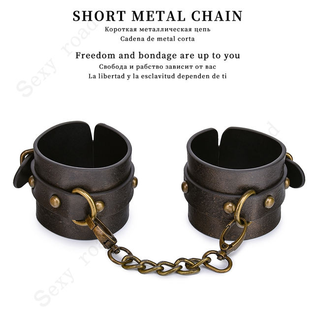 BDSM Bondage Vintage Leather Handcuffs Fetish Bondage Handcuffs Slave Sex Toys For Adults Sex Game Slave Cosplay